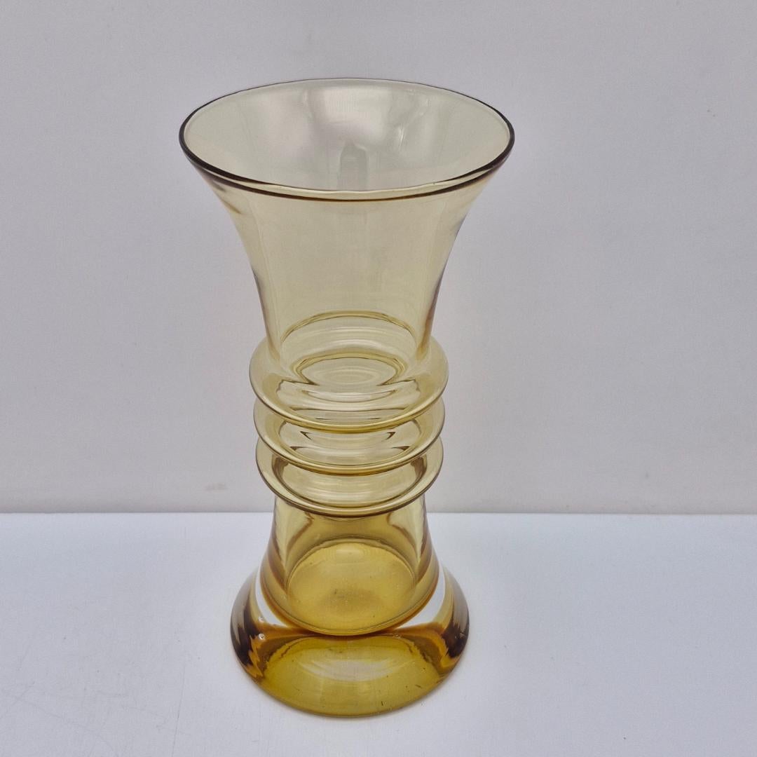 Riihimäen Lasi, Kielo Maljakko, amber - Tamara Aladin. Kaunis amberin värinen lasimaljakko, Kielo -sarjaa. Maljakon korkeus 20 cm.