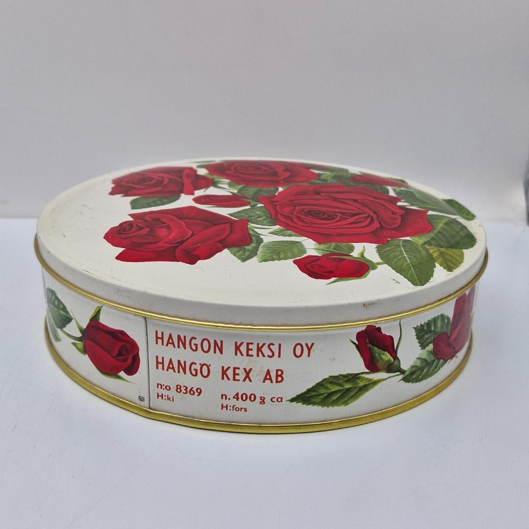 Ruusu Peltirasia, Hangon keksi. Hangon keksin kaunis ruusukuvioitu pyöreä peltirasia, jonka halkaisija 20,5 cm ja korkeus 5,5 cm.
