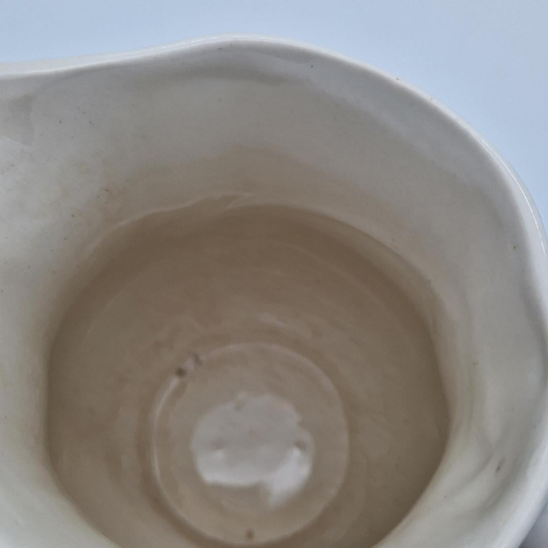 Maitokannu on ehjä ja ikäisekseen hyväkuntoinen yleisilmeeltään päällisin puolin, normaalia ajan patinaa ja sisäpuolella tummumaa / kellastumaa. Arabian piippuleima v. 1932-1949 pohjassa.
