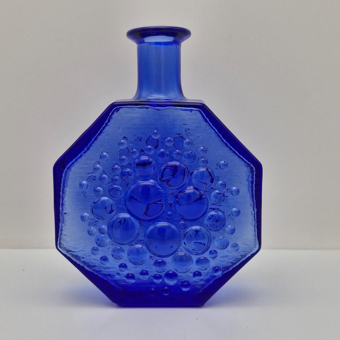 Riihimäen Lasi, Nanny Still, Stella Polaris Koristepullo 1720, sininen. Nanny Stillin Riihimäen Lasille suunnittelema koristepullo, Stella Polaris. Väri upea säihkyvän sininen.