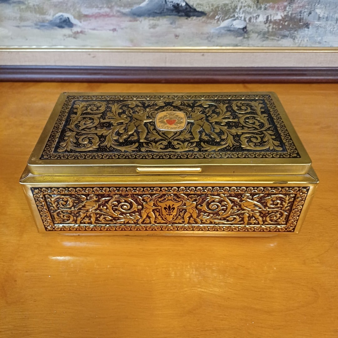 Saranakannellinen, peltinen konvehtirasia on hyväkuntoinen, kuitenkin lieviä tummumia ja paikoin pintaruostetta.