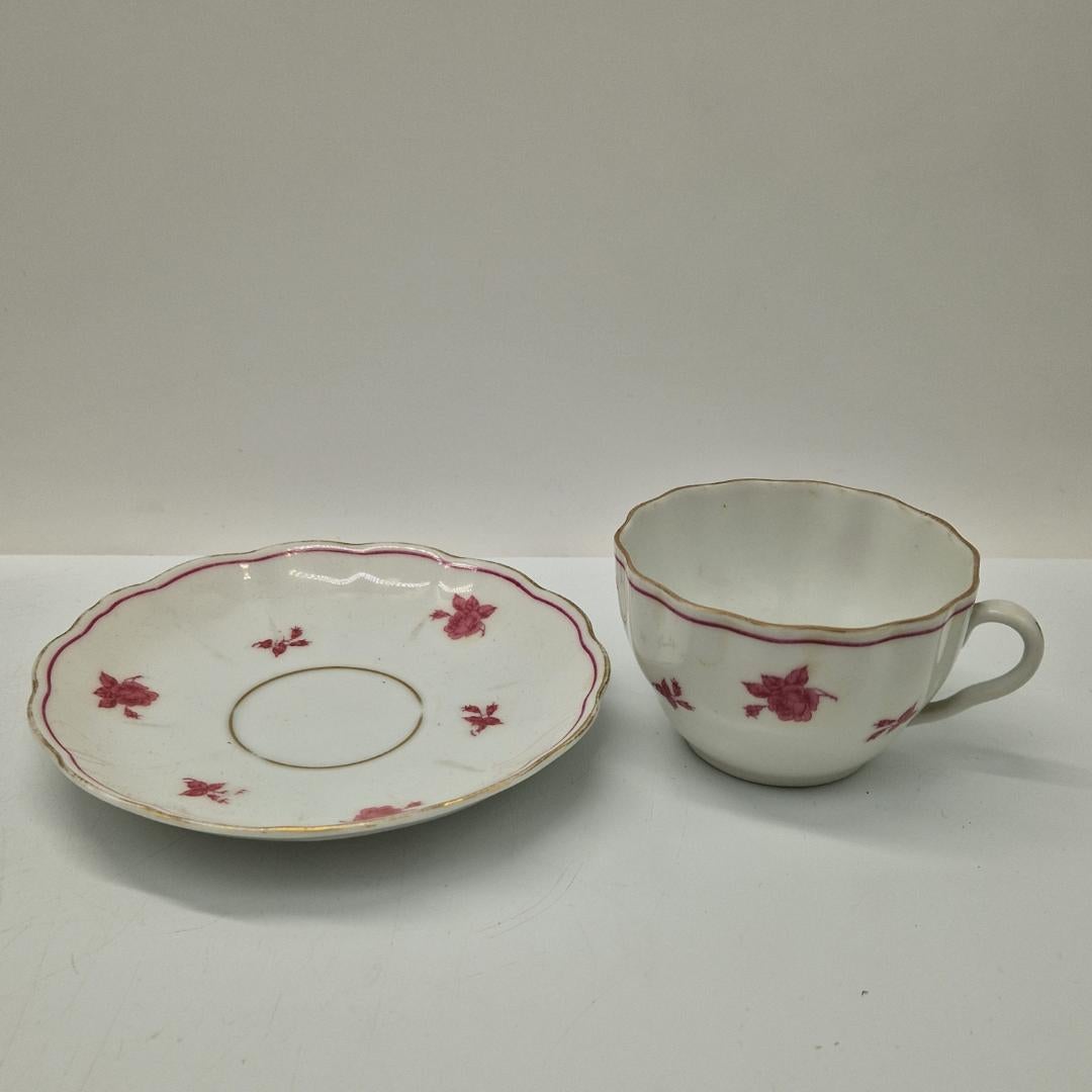 Kuppeja tasseineen on varastossa enää 1 kpl, ehjiä ja hyväkuntoisia; normaalia ajan patinaa / vähäistä käyttökulumaa, kultauksissa kulumaa.